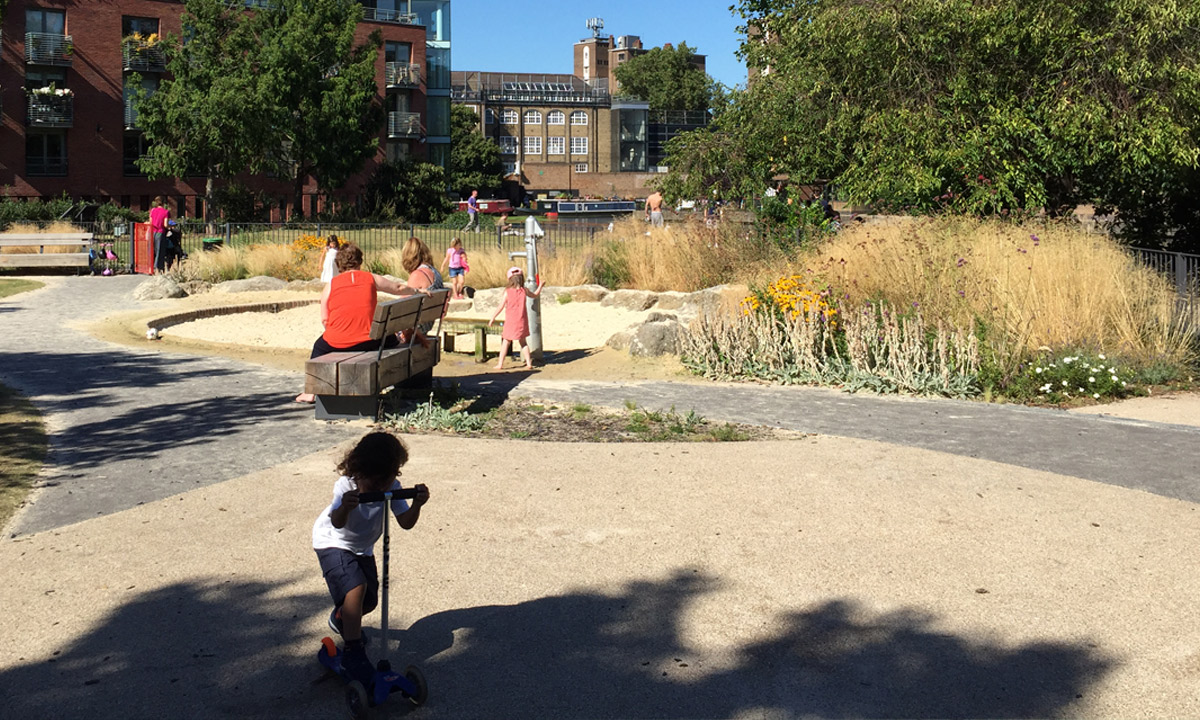 Working with LB Islington Parks to produce a new masterplan for this existing park that bounds City Road Canal Basin. Phase 1 completed in June 2015 featured: