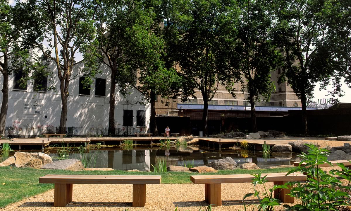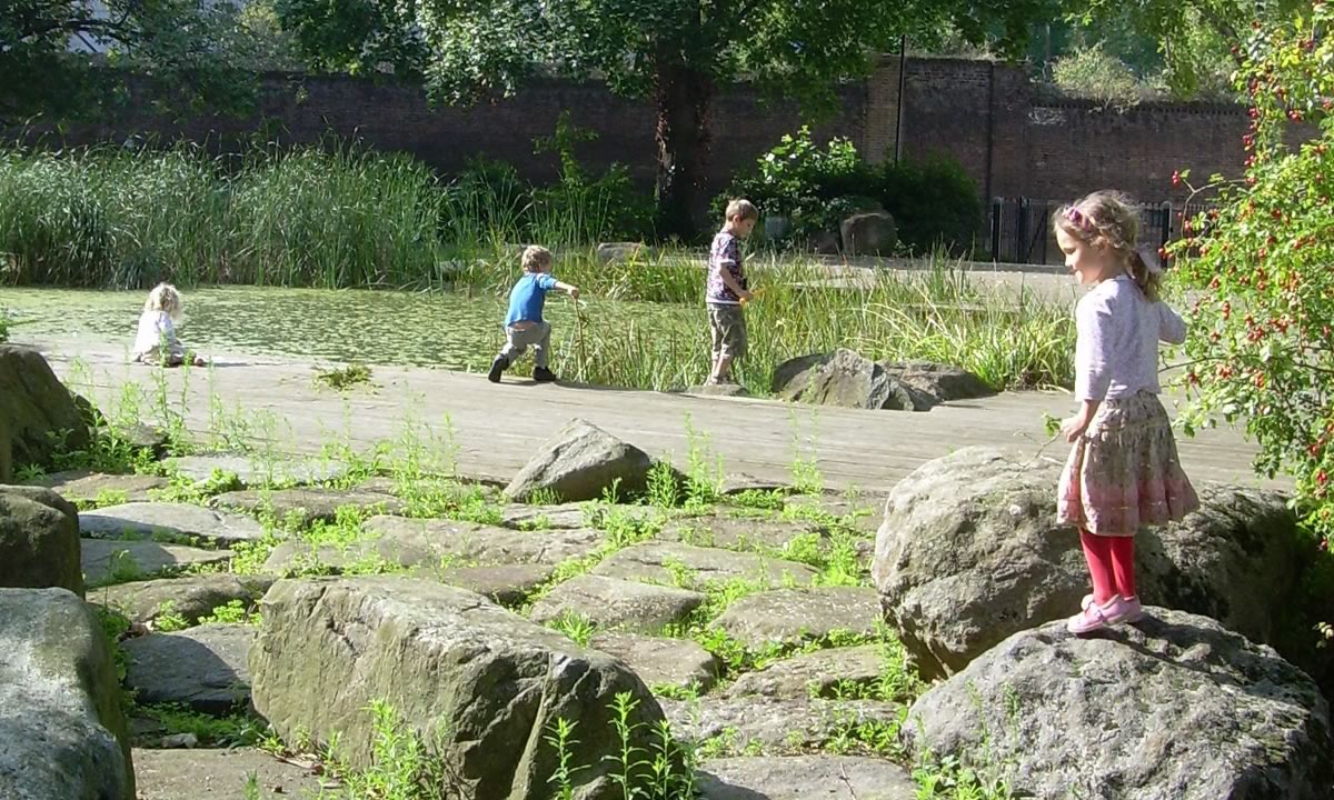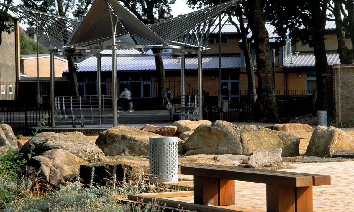 Twinkle Park was the first phase of the Charlotte Turner Gardens masterplan which has seen the implementation of three subsequent phases. Features included: Road closure and Homezone improvements to the front of the Charlotte Turner School, alley widening to improve connectivity between the two spaces, a sensory garden, a new play area, school playground improvements, lighting and signage improvements and outdoor sport and performance spaces.